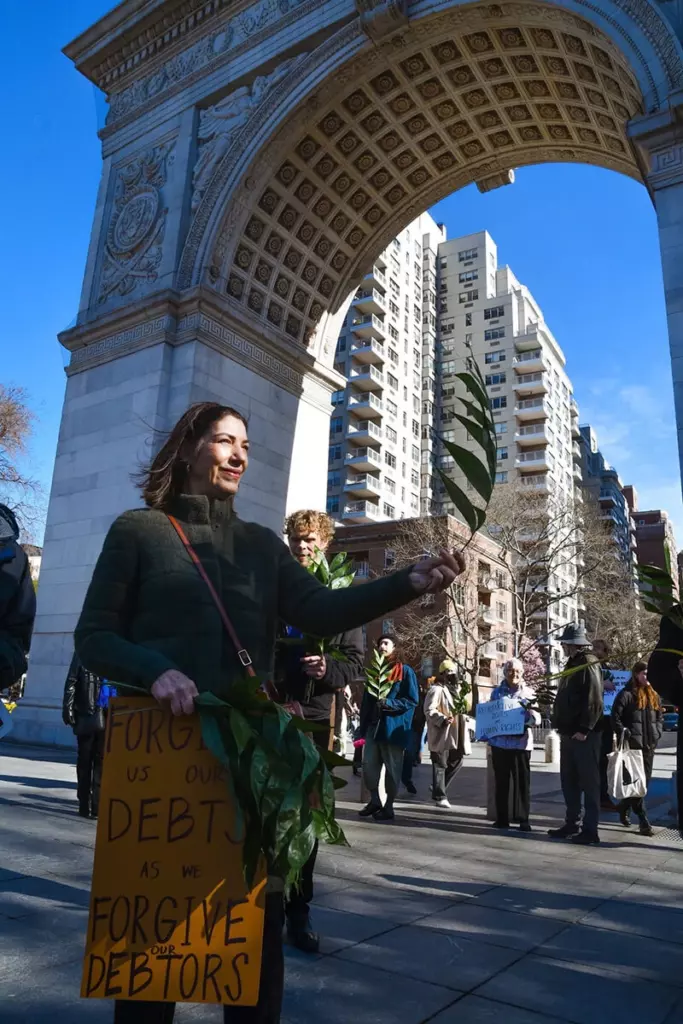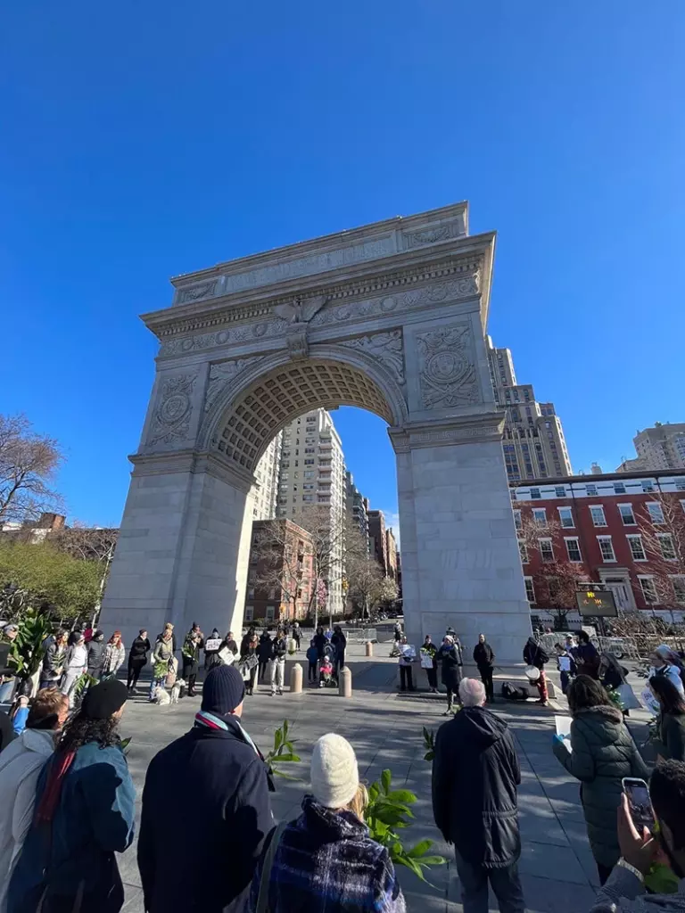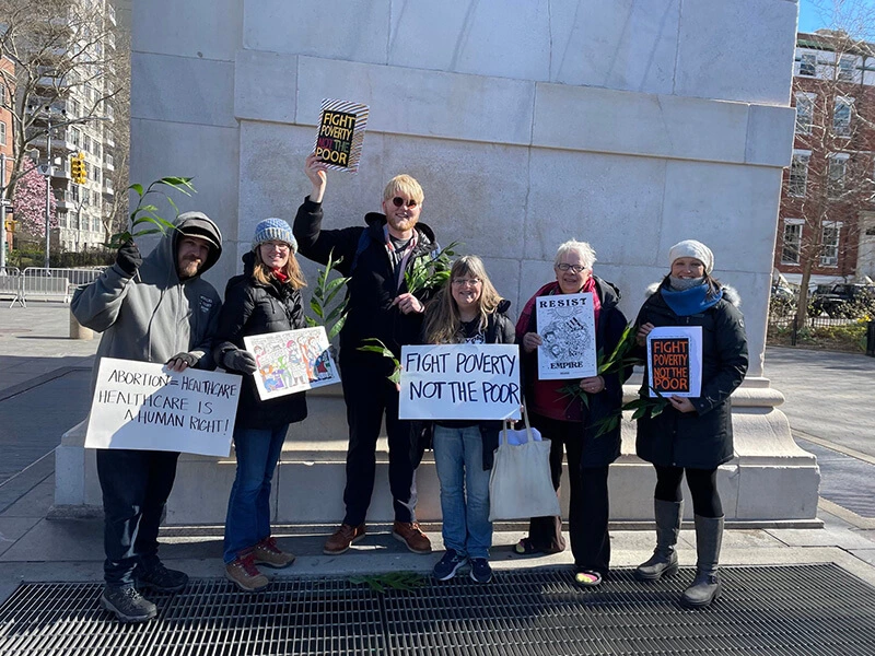 A Palm Sunday service was held in Washington Square Park with New York City churches, community leaders, leaders from the NYC Poor People’s Campaign, and the Kairos Center. Together, they gathered to remember that Jesus’ Palm Sunday procession was a bold act of resistance—an anti-imperial march led by a movement of the poor and oppressed demanding freedom and justice. The service served as a powerful reminder that our faith calls us to confront empire and organize for life.